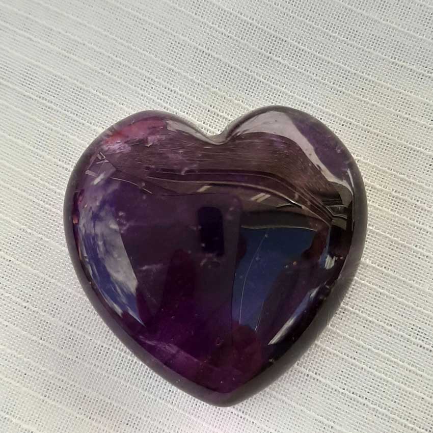 Geweldig hartje van amethist met een mooie donkerpaarse kleur en als je hem in het licht houdt dan zie je op sommige plekken een lila kleur.