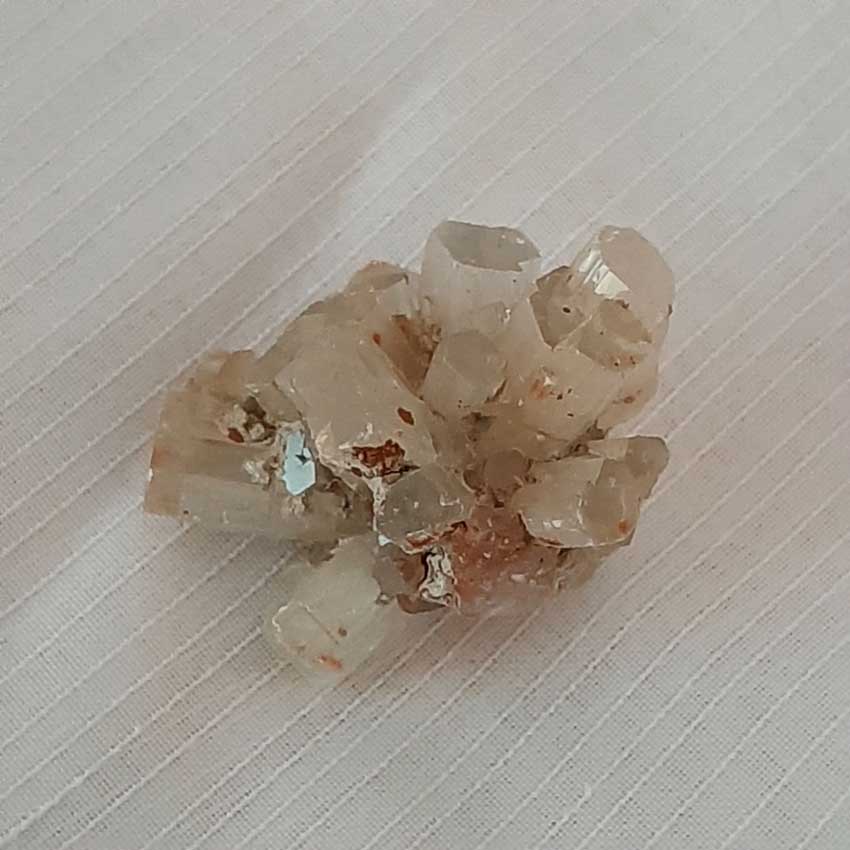 Schitterende kleine witte aragoniet met bijzondere verschillende maten kristalletjes eraan vast zitten.