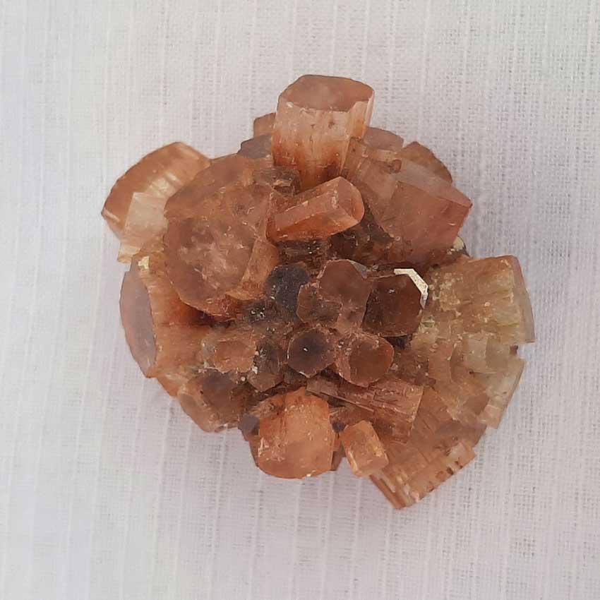 Schitterende kleine bruine aragoniet met bijzondere verschillende maten kristalletjes eraan vast zitten.
