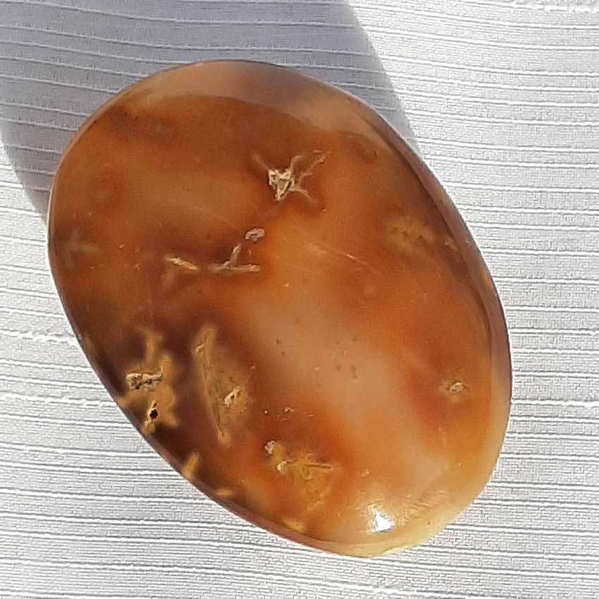 Een mooie hansteen van carneool met mooie oranje en witte tinten erin.