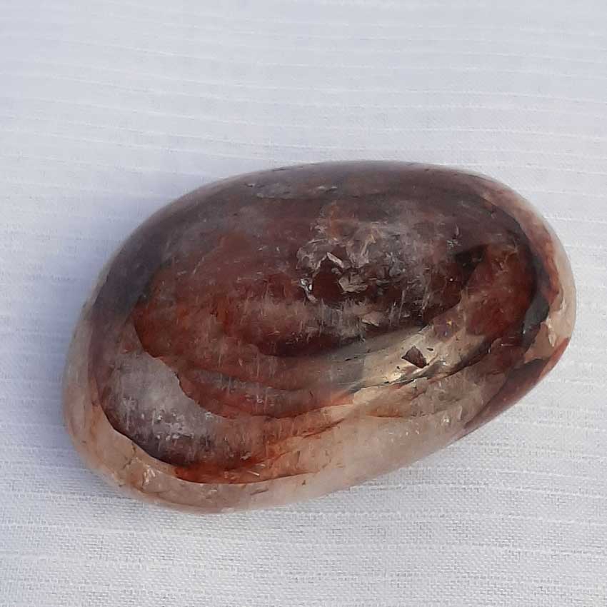 Fijne handsteen van hematietkwarts. De hematiet in de kwarts geeft de rood-bruine kleur.