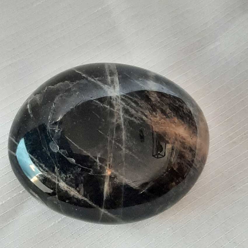 Een prachtige zwarte Maansteen met hele mooie strepen en kleuren.