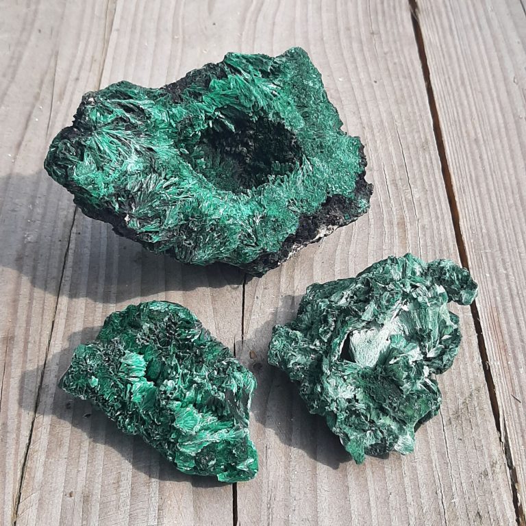 Naaldvormige malachiet is alleen te koop in de winkel.