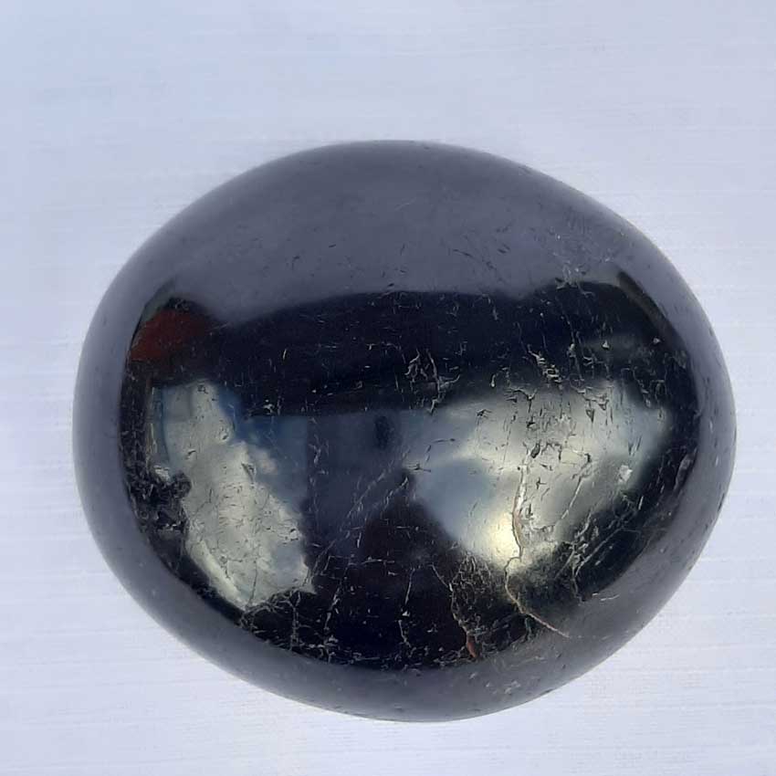 Een mooie handsteen van zwarte toermalijn met mooie tekeningen.